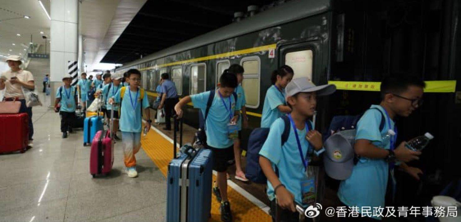 据香港大湾区时报报道:随着暑假来临,不少学生都出外地交流,其中700多名香港、深圳、澳门、台湾学生到内地四个省份作12天的文化交流研学,日前在深圳火车站乘坐火车出发。