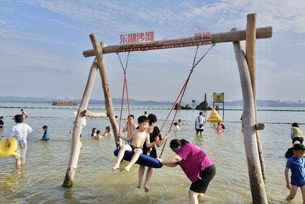 市民游客在武汉玛雅海滩,从早嗨到晚。