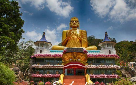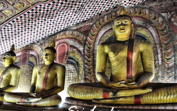 丹布拉佛窟建在在高达115米的巨岩斜坡上,山中有寺,寺在山中。可以追溯到公元前1世纪的古老洞穴,佛窟内仅壁画就达2100平方米、雕像更是达到了157尊,每一尊都各有特点。佛窟内有多种不同宗教的雕塑,最多为佛教,其次为印度教等宗教。