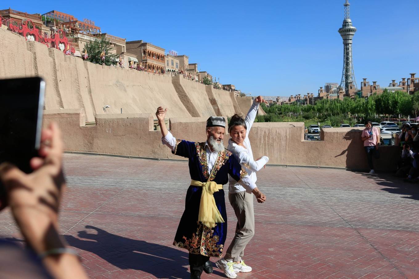 仪式前的热身——网红爷爷邀请游客共舞,嗨起来!
