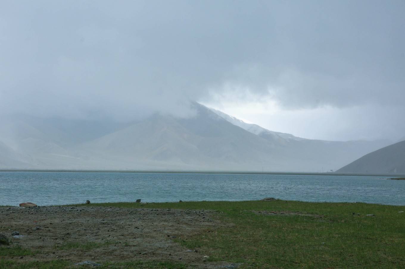 高原气候多变。 卡拉 库里湖居然下起了雨夹雪!一个人买了门票沿湖边转了一圈,冻得瑟瑟发抖不说,关键啥也没看到。自己脑子里YY一下湖对岸昆仑三雄的雄姿。