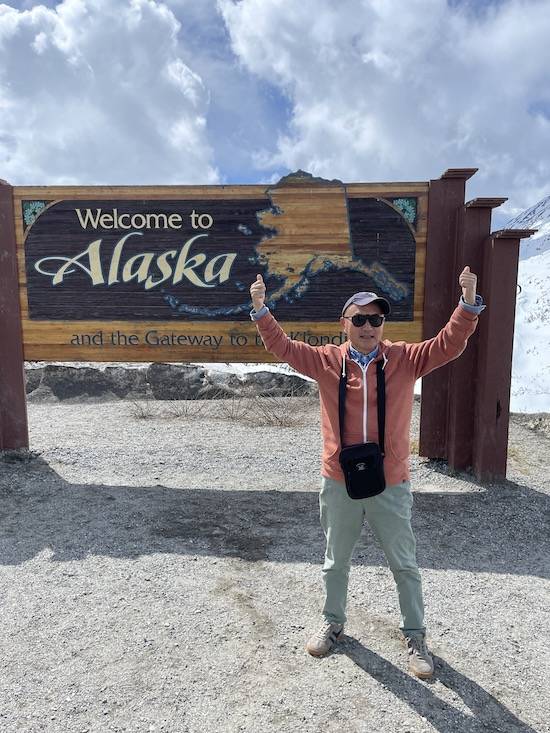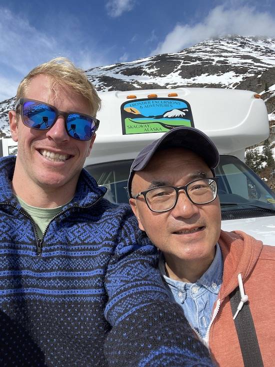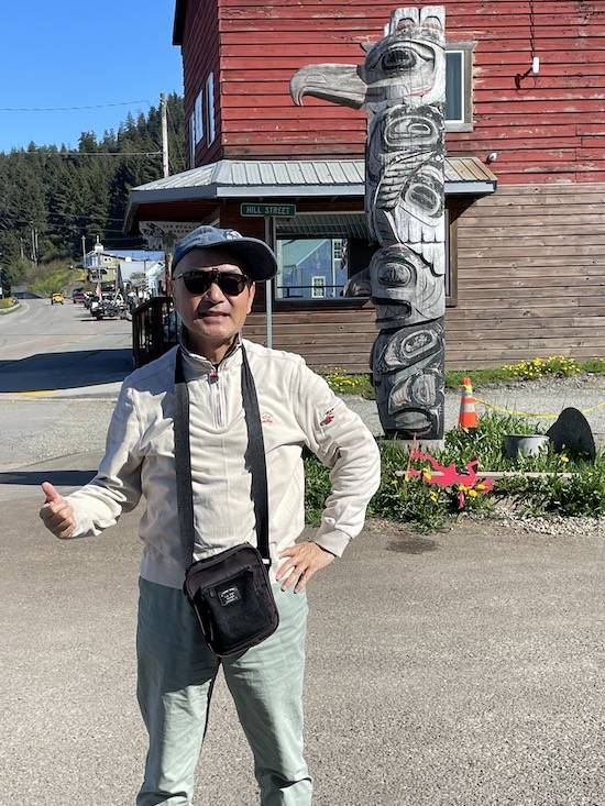 参加一天游,去加拿大BC省的White Pass,途中看到棕熊,太幸运,上图是和导游简司机合影,他的英语很漂亮,在阿拉斯加行程中,游轮乘客大半是美加游客,我的英语也提高不少。