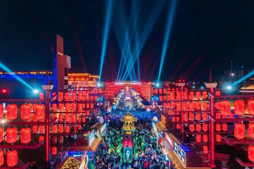 在 梅河口东北不夜城看演出、赏灯光,漫步游览陕西、四川、云南主题街区;