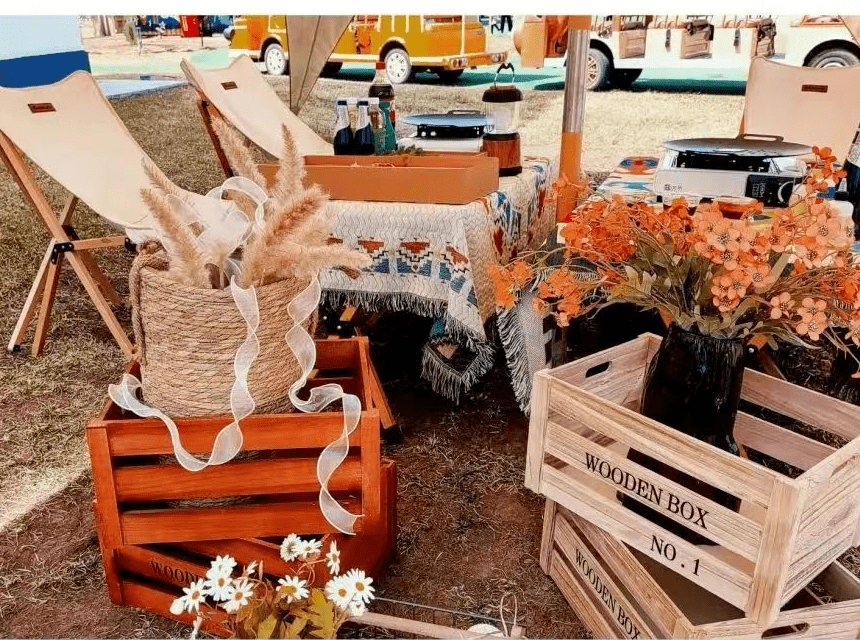 用餐时间可以和伙伴们一起露营烧烤,在帐篷下,围坐在圆木桌旁,用大块的烤肉缓解旅途中的疲惫。