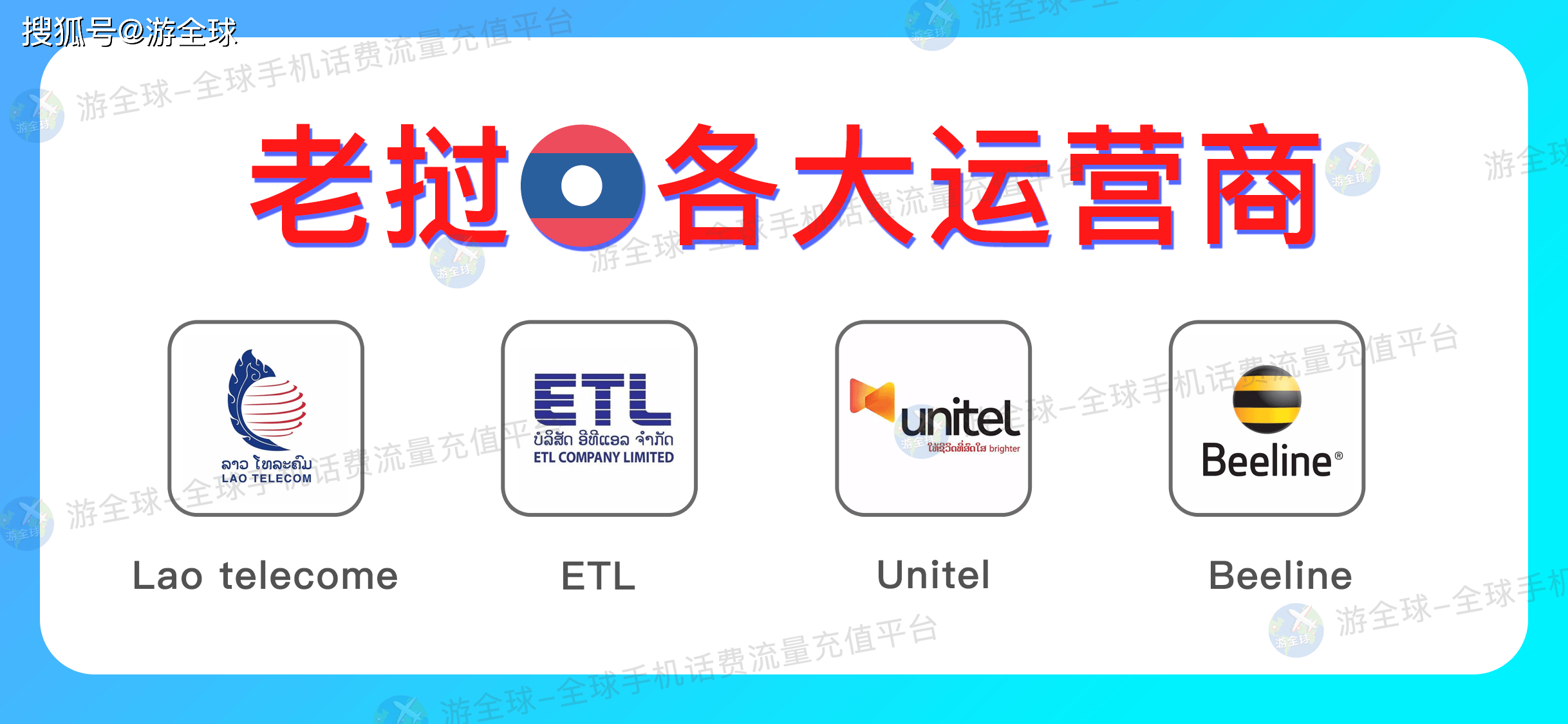 老挝有四大通信运营商,分别是:Lao telecome、ETL、Unitel、Beeline ;