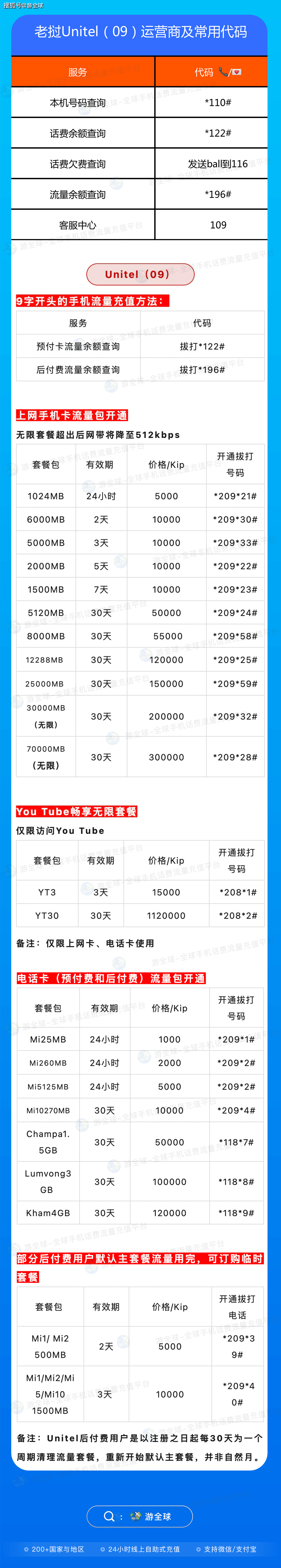 老挝Unitel(9字开头)话费流量充值说明【游全球】