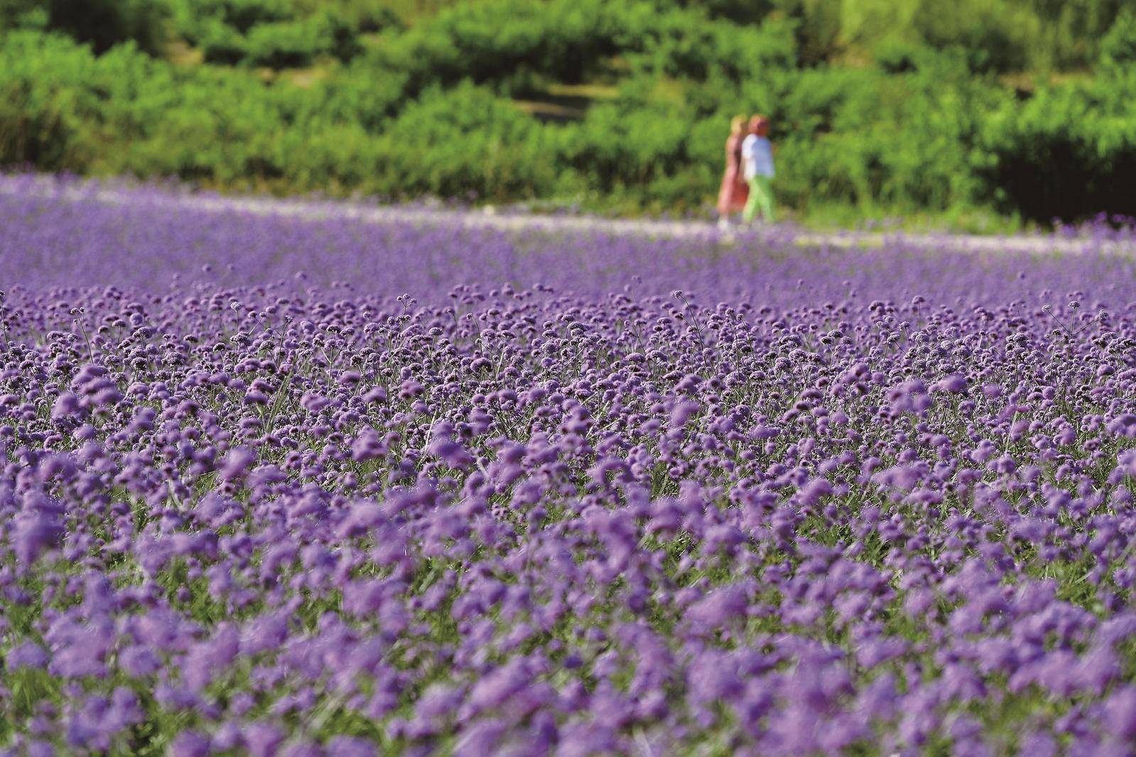 游客置身在花海 游客置身在花海中,感受大自然浑然天成的浪漫气息。