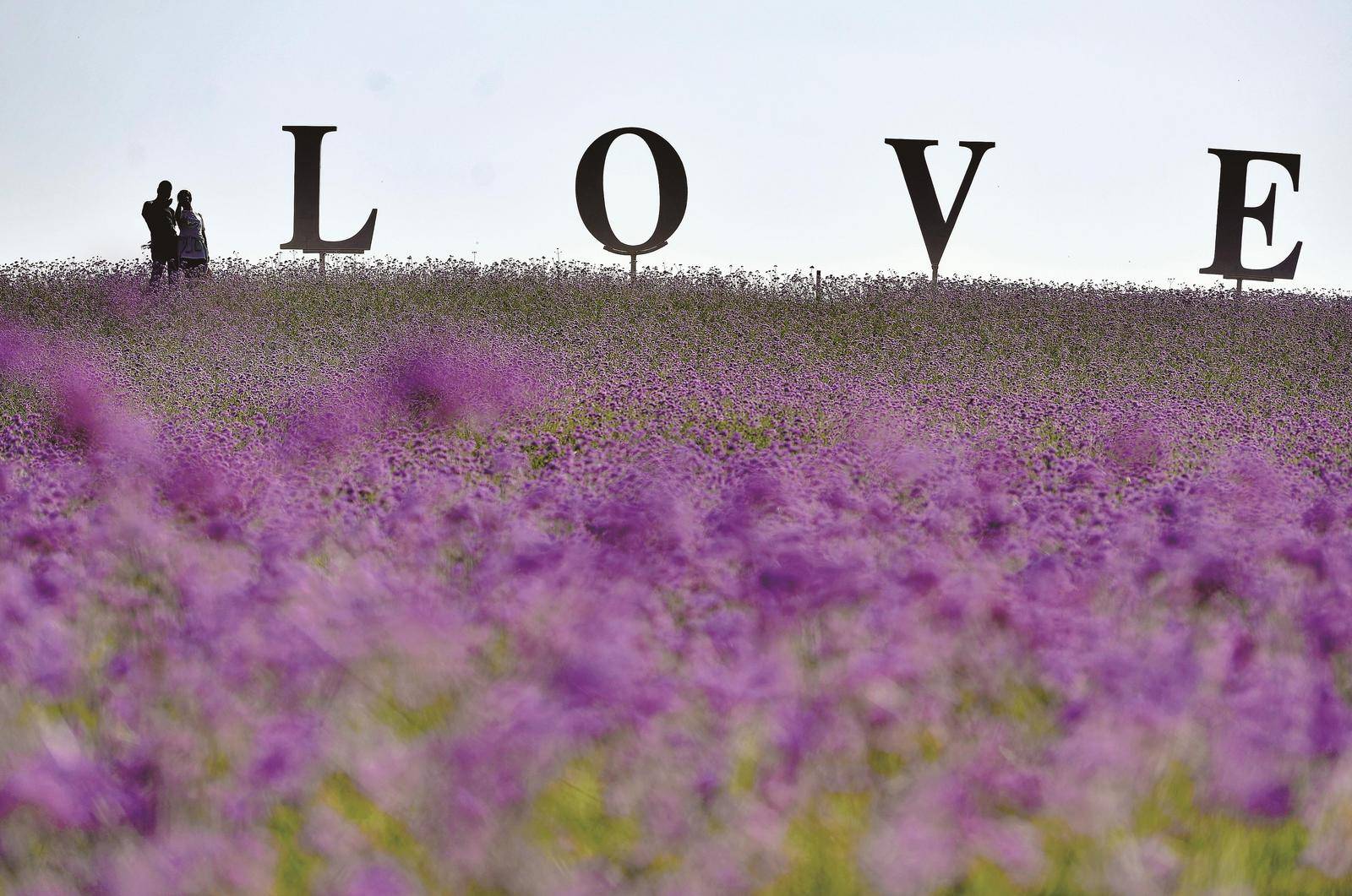眼下,薰衣草全面进入盛花期。宁夏薰衣草庄园里,一望无际的马鞭草、薰衣草、九叶菊花田与蓝天、白云交相辉映,描绘出一幅浪漫画卷。近年来,宁夏薰衣草庄园通过改良荒漠土地,种植马鞭草、九叶菊、薰衣草等花卉以及樟子松、新疆杨等20余种树木,让昔日的荒漠戈壁变身如今的绿洲花海。(7月15日摄)
