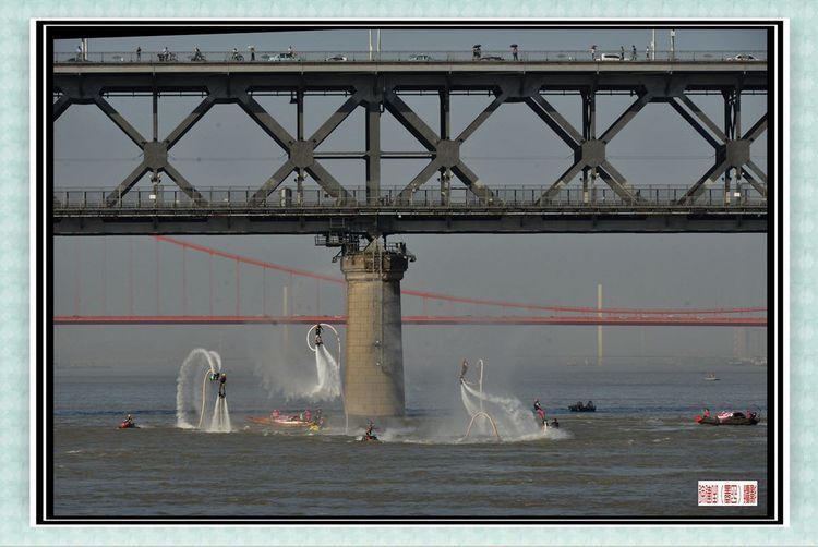龟蛇雄峙一江开,波涛惊骇涌桥来。