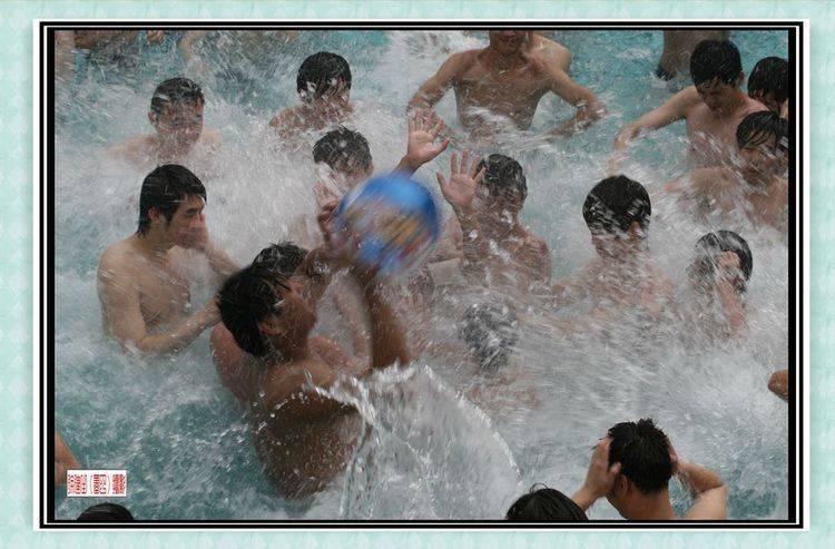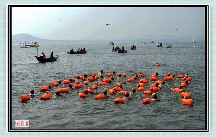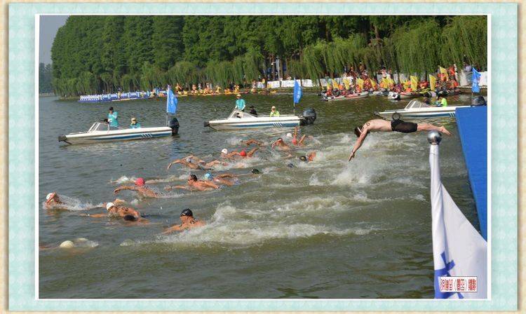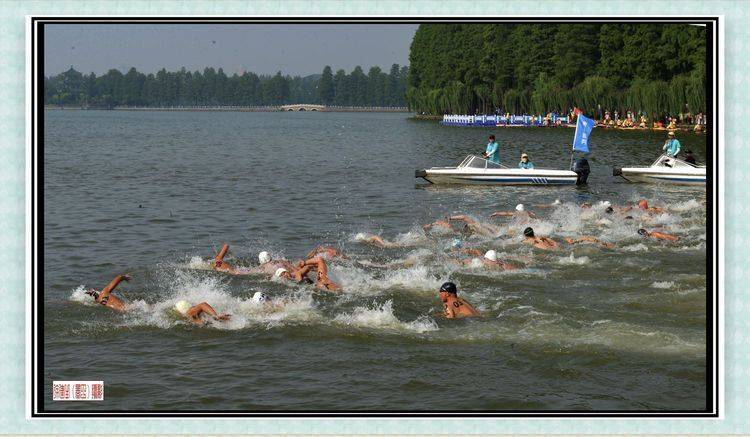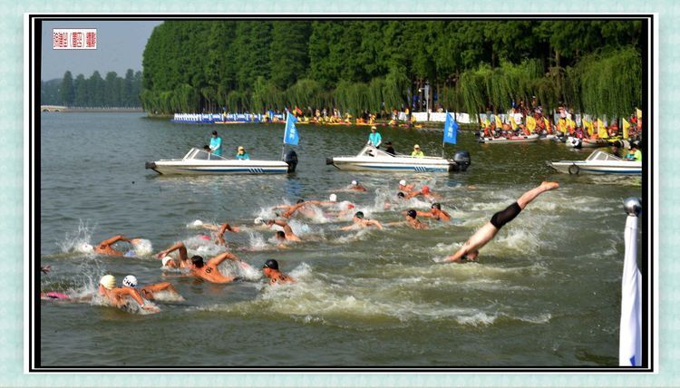 泳士搏击波浪间,生性乐水在楚天,长江万里涛声处,勇立潮头敢争先。
