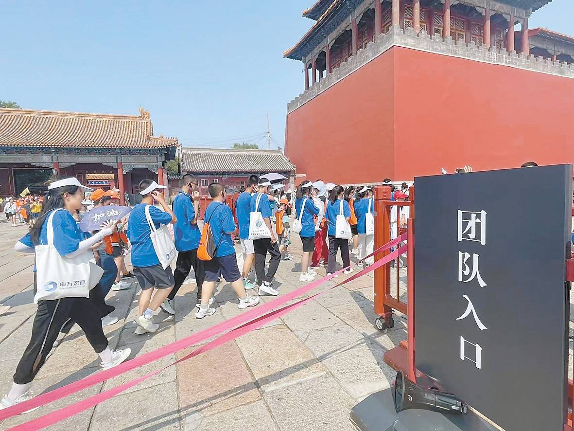 暑假期间,午门外的现场票务窗口也一度排起长队。“根据故宫票务规定,包括享受免费和优惠政策在内的所有人都须至少提前一天实名预约。现场窗口是为了照顾60岁以上不便使用手机的老人和可能对票务政策不够熟悉、没有提前预约的18岁以下未成年人,协助他们补票。”李睦麟说,“但自今年4月起,现场爱心服务成为部分旅行社不为观众完整订票甚至现场拉客拼团的手段。”