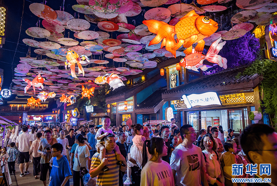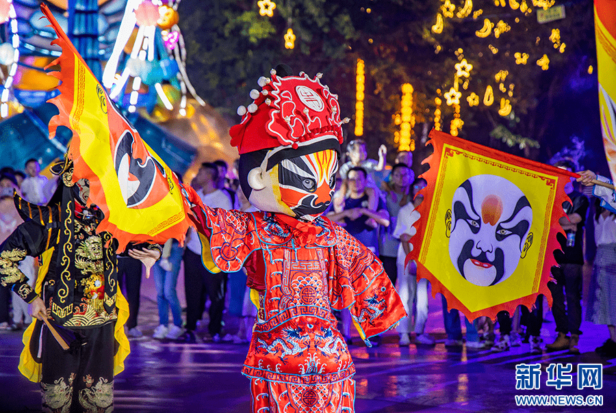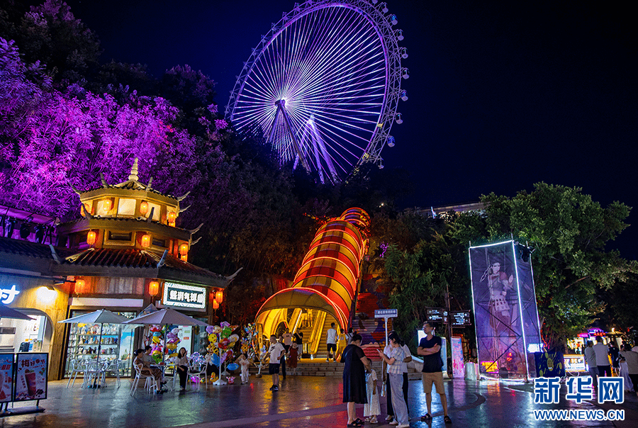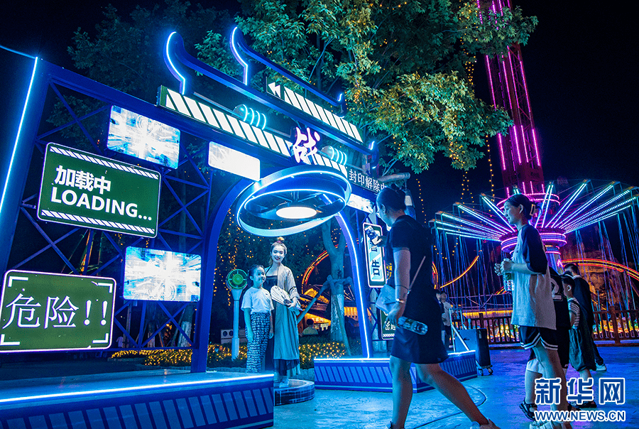 近日,重庆融创文旅城“渝乐国潮光影节·融乐奇妙夜”开幕,吸引众多游客前来游玩。入夏以来,重庆围绕消夏避暑、休闲旅游、夜间消费、欢度暑假等,不断扩展夜间消费业态,积极促进暑期消费。新华网发(孙凯芳 摄)