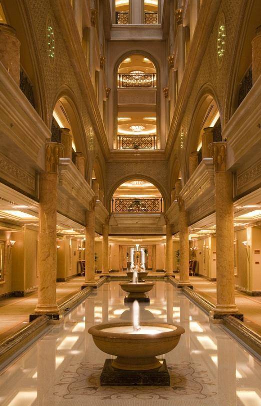 和迪拜一样,阿联酋也是一个非常富有的国家,今天要介绍的国宫酒店就位于阿联酋。光从名字就可以看出,它是一个以皇宫为基础建设的酒店,而它也的确担得起这个名字。24万多平方米的酒店面积,简直就是比皇宫还要大,不过房间却只有区区400间,并且内外还一共使用了22吨重的黄金来进行装饰,全酒店都给人一种金碧辉煌的视觉感官,处处都有着雍容华贵之感。据说在这里住一晚就要数万元人民币,最贵的房间甚至一晚还要十万的天价费用。