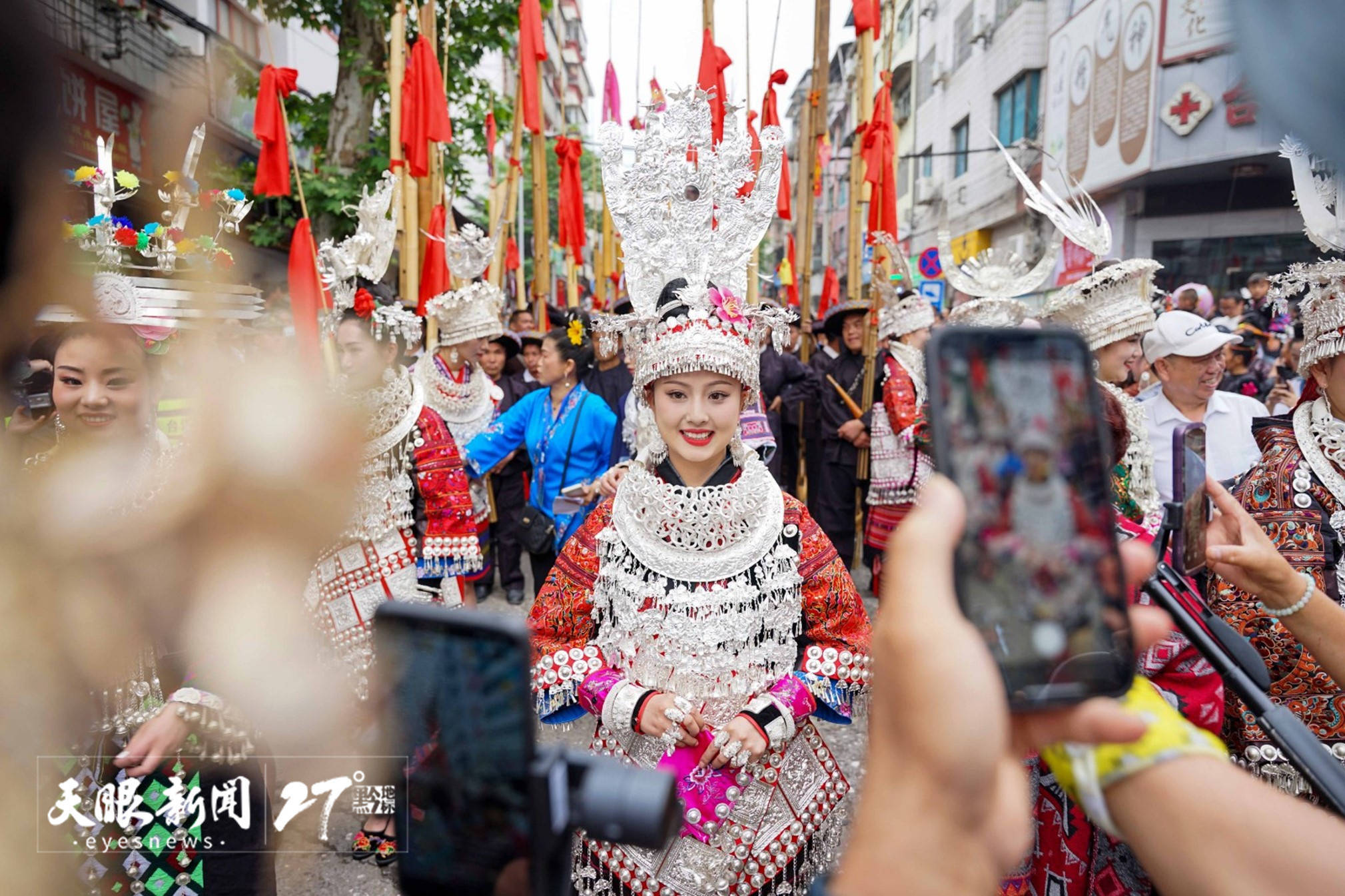 台江苗族姊妹节吸引直播达人。 龙顺伟 摄