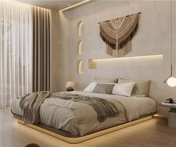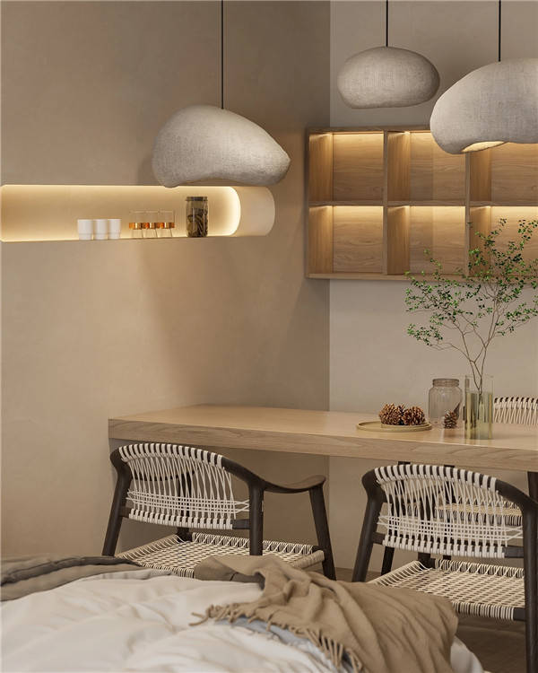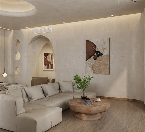 全屋墙面选用大地色系艺术涂料,给人以宁静之感,简于形,奢于心。是独具匠心,也是风景收藏家,简约的设计理念,细腻精致的墙面材质,如艺术品般带来唯美的生活享受。