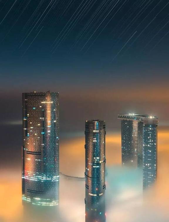 在迪拜的光环下,人们往往会忽略阿联酋的首都阿布扎比。KhalidAlHammadi的摄影提醒世人,阿布扎比充满壮丽的景观,特别是大雾中的建筑,白雾将未来派的摩天大楼和传统风格的穆斯林建筑封装起来。