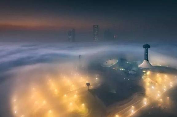 AlHammadi不断地寻找这个城市的新视角,不断地提升他的建筑摄影美学。他尤其着迷这座城市的冬雾,大雾呈现出不同的形状和色彩,这种场景凝结着他的情感与情怀,自然拥抱城市并溶为一体。