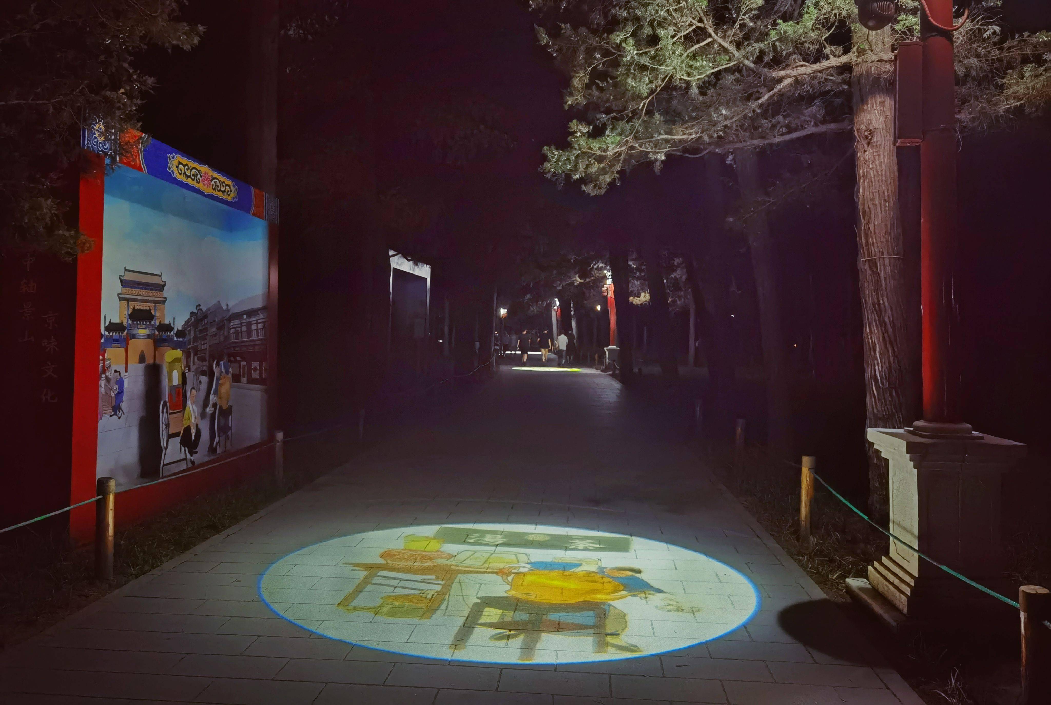 7月15日,景山公园,夜景投影灯彰显京味文化。新京报记者 薛珺 摄