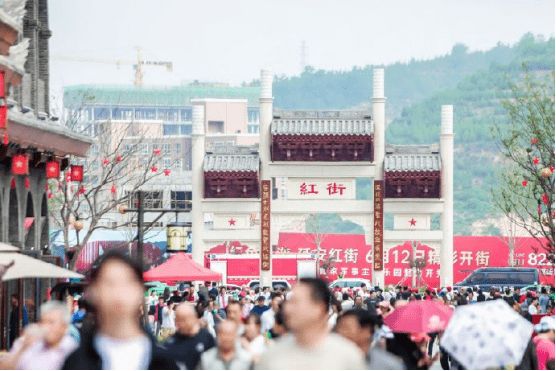 今日延安红街,已变成全国红色旅游景区。延安红街整体采用延安时期的建筑风格,包括主题街区、红色讲堂、沉浸式演艺、射击乐园、长征步道、窑洞酒店、特色非遗、红培基地等。整个红街延绵1.5公里,包含有5个红色主题广场,148个红色业态商户,12个红色文化业态项目,和8个线下场景植入自有版权的红色培训研学课程。