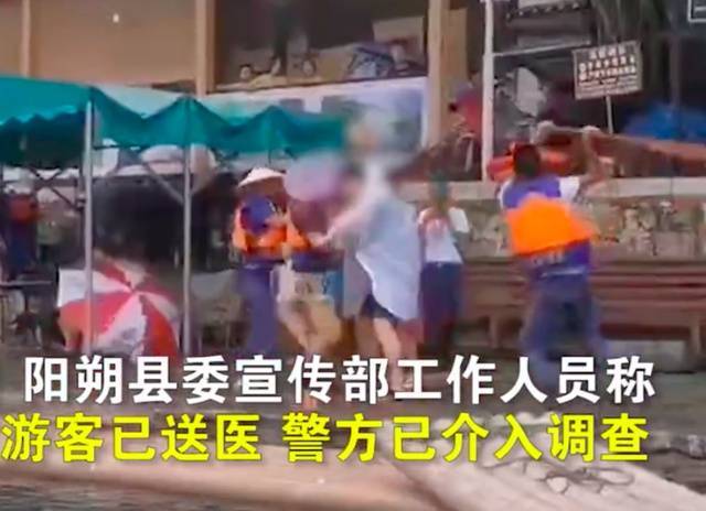 原标题:阳朔一景区多名筏工殴打男游客,并将女游客推下河,当地回应:游客已送医,警方已介入调查