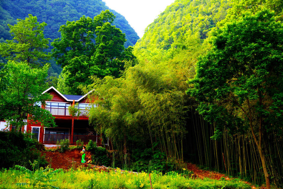 这里的建筑物仿佛都是从大别山深山里长出来的房子,当然不是长出来的土里土气的房子,度假村的建筑以前卫建筑的风格和原生态的环境相互映衬,建筑物和天然物的融为一体,树从屋顶破出,石在墙中生衍,水从房中潺流。