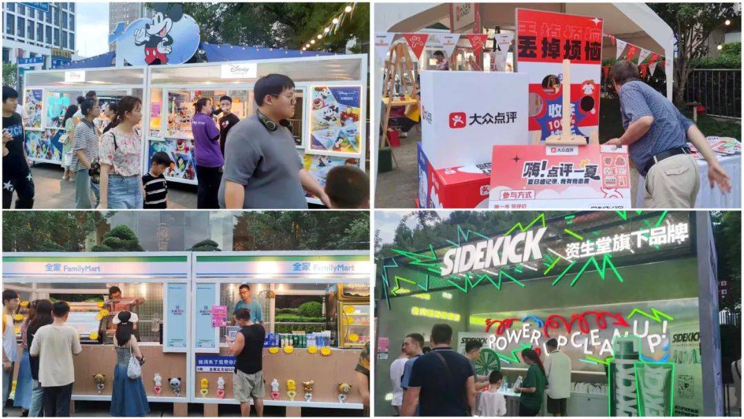 相比传统市集,富城路限时步行街的品牌业态更丰富、更有文化特质,囊括了网红美食,品牌特展和文创零售等系列商户,如迪士尼商店、资生堂、KFC、盒马、全家、大众点评、叮咚买菜、沪上王记葱油饼、正大食品等。