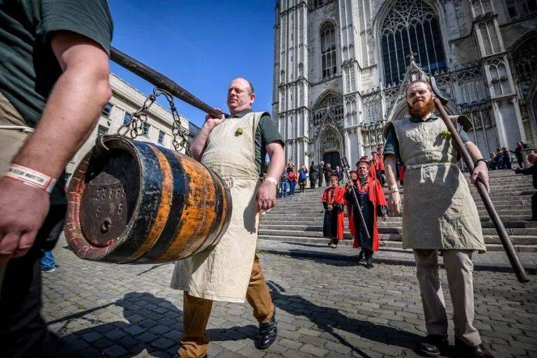 比利时啤酒周末以布鲁塞尔历史悠久的主广场令人印象深刻的背景为背景。通常有近50家比利时啤酒厂——该国最大和最成熟的生产商——提供大约350种不同的比利时啤酒。在同一个周末,身着长袍的比利时酿酒商联合会举行了他们的年度仪式,欢迎新的入选者加入“比利时酿酒商Mash Staff骑士团”。