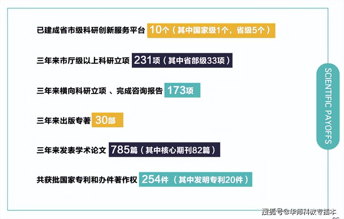近三年,获市厅级以上科研奖项33项;获市厅级以上科研立项208项,其中省部级、地市级重点以上项目36项;横向科研立项63项;省部级政府采纳的咨询报告5篇;科研经费累计1881万元;公开发表论文708篇,其中北大核心以上期刊论文48篇;出版学术专著和教材49部;获批国家专利和软件著作权127件,其中发明专利8件。