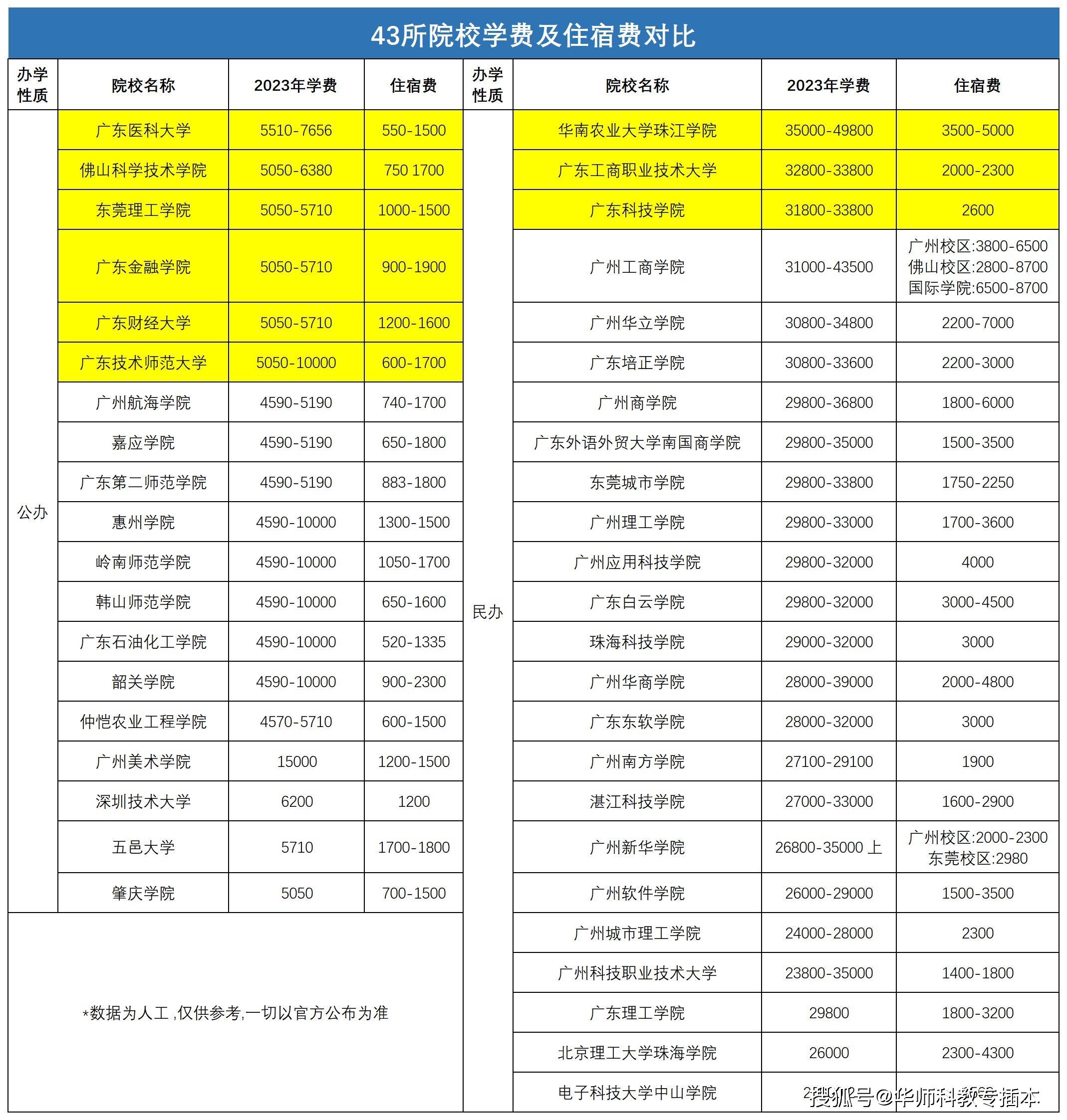 小编总结了23年最新的院校学费及住宿费
