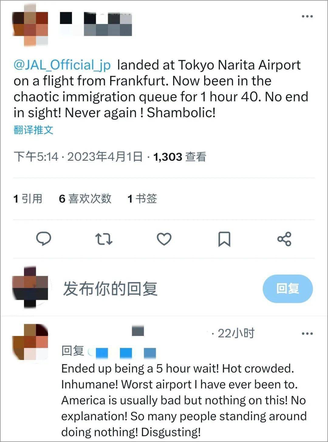 乘坐从法兰克福起飞的航班降落至成田机场,等了5小时才入境。
