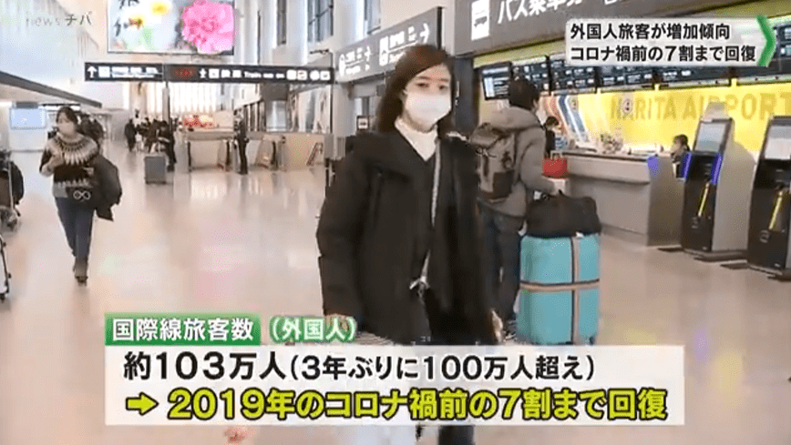 2023年1月份,成田机场国际线的旅客人数达到了167万人,其中外国旅客人数为103万6401人。 时隔3年首次突破100万人!