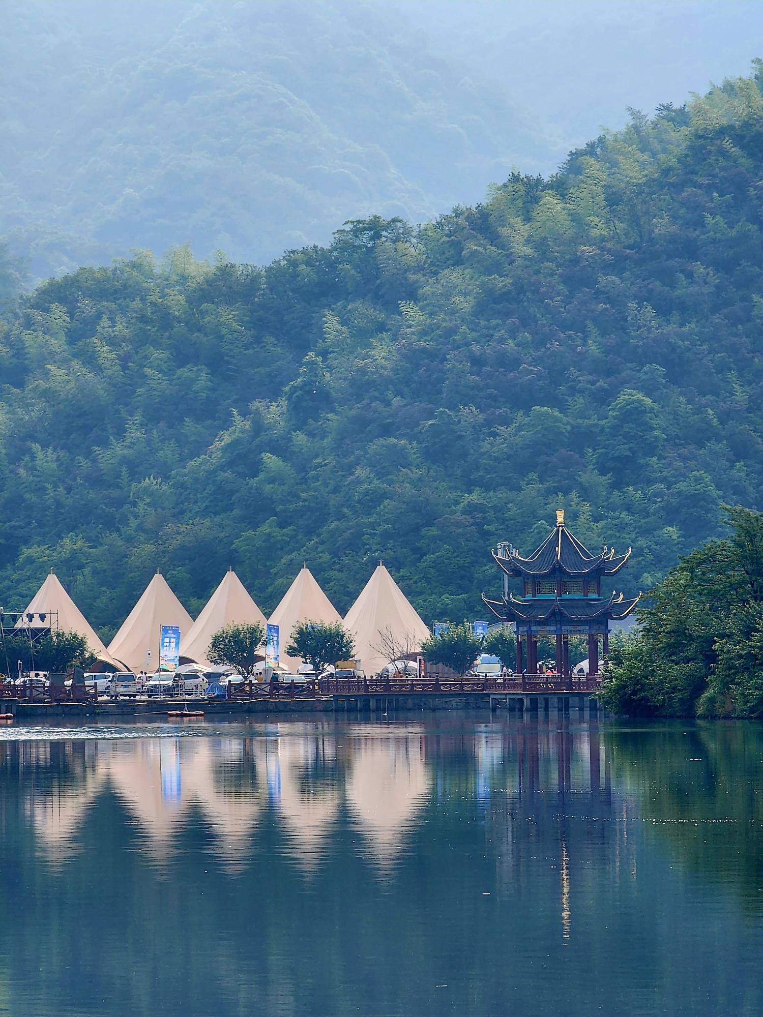 云山雾海中壮丽的日出,万亩绿竹绵延,竹下有水,流水潺潺,溪水清澈见底,小鱼穿梭的美景,日落黄昏,山峦尽染,山间晚风吹来的惬意,洁白的云朵轻舞,红霞万朵的瑰丽,定会为你的清凉之旅增色不少!在这里露营几天,远离城市、回归原始,过一段不插电的、拉起帘子就听歌的自然生活。一起享受夏日夜空下美妙的世界吧!