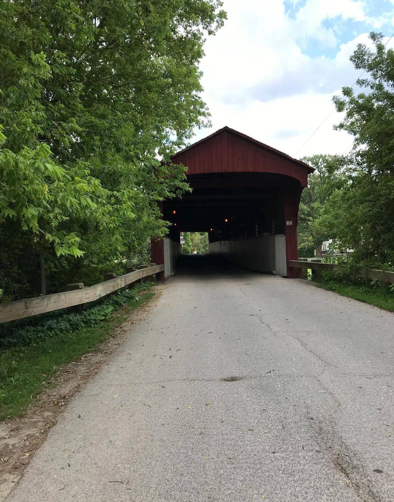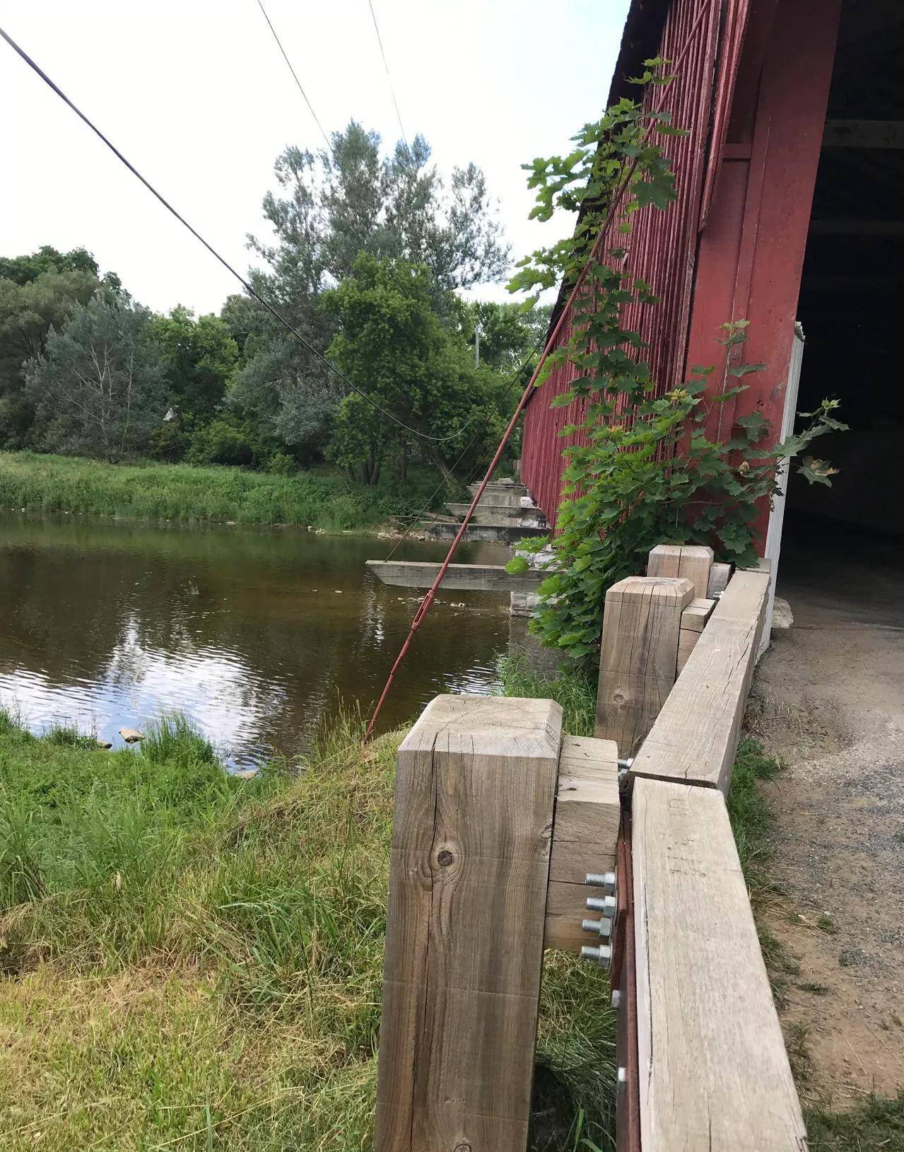 其实,在加拿大,廊桥很多,主要功能:通行。其样子有点庞大,横架Grand River。可能是加拿大盛产巨大红松,高几十米,屡见不鲜。就用整棵原木做主梁。