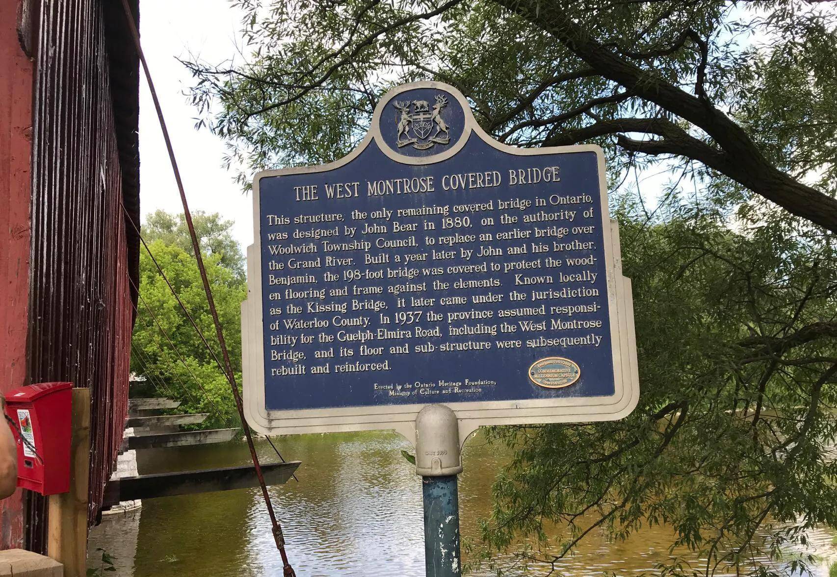 接吻桥,在加拿大甚至整个北美,名声很大,一来可以重温“廊桥遗梦”旧时光。二来,2023年3月,加拿大Canada post发行了一组廊桥纪念邮票,其中一座就是安省滑铁卢地区的The West Montrose Bridge。