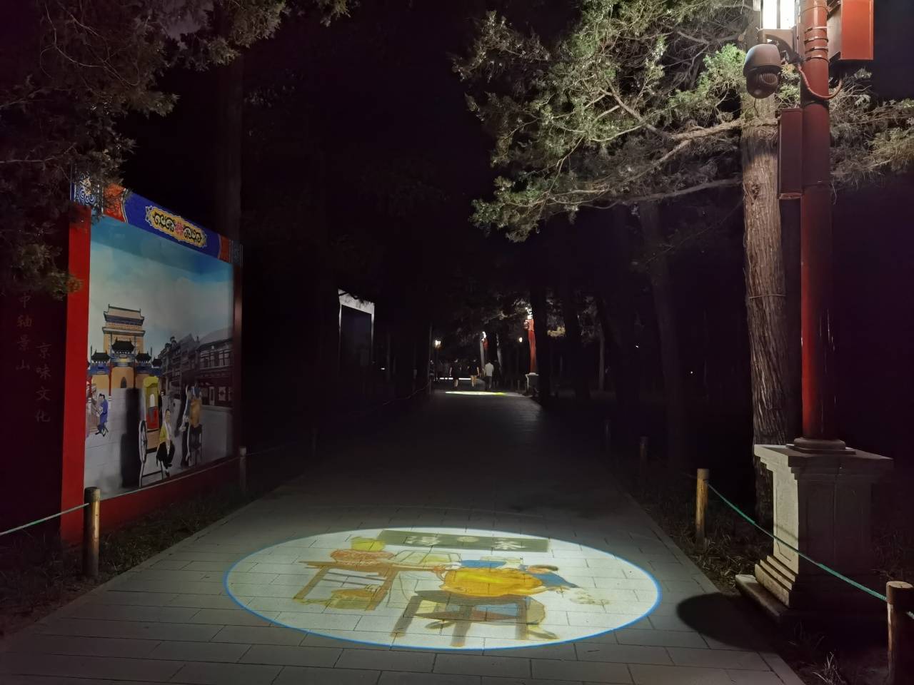 景山公园近期首次推出暑期夜赏体验月,在公园各大门区、重点景点等处设置景观照明灯和投影灯100多组,特别是公园南门点亮了中轴线上15处遗产点主题微缩景观,营造出梦幻的中轴盛景。夜景照明设施也在山体五亭修缮中进行了全部更换,景观效果显著提升,五亭夜间景观照明每周五、周六开启。