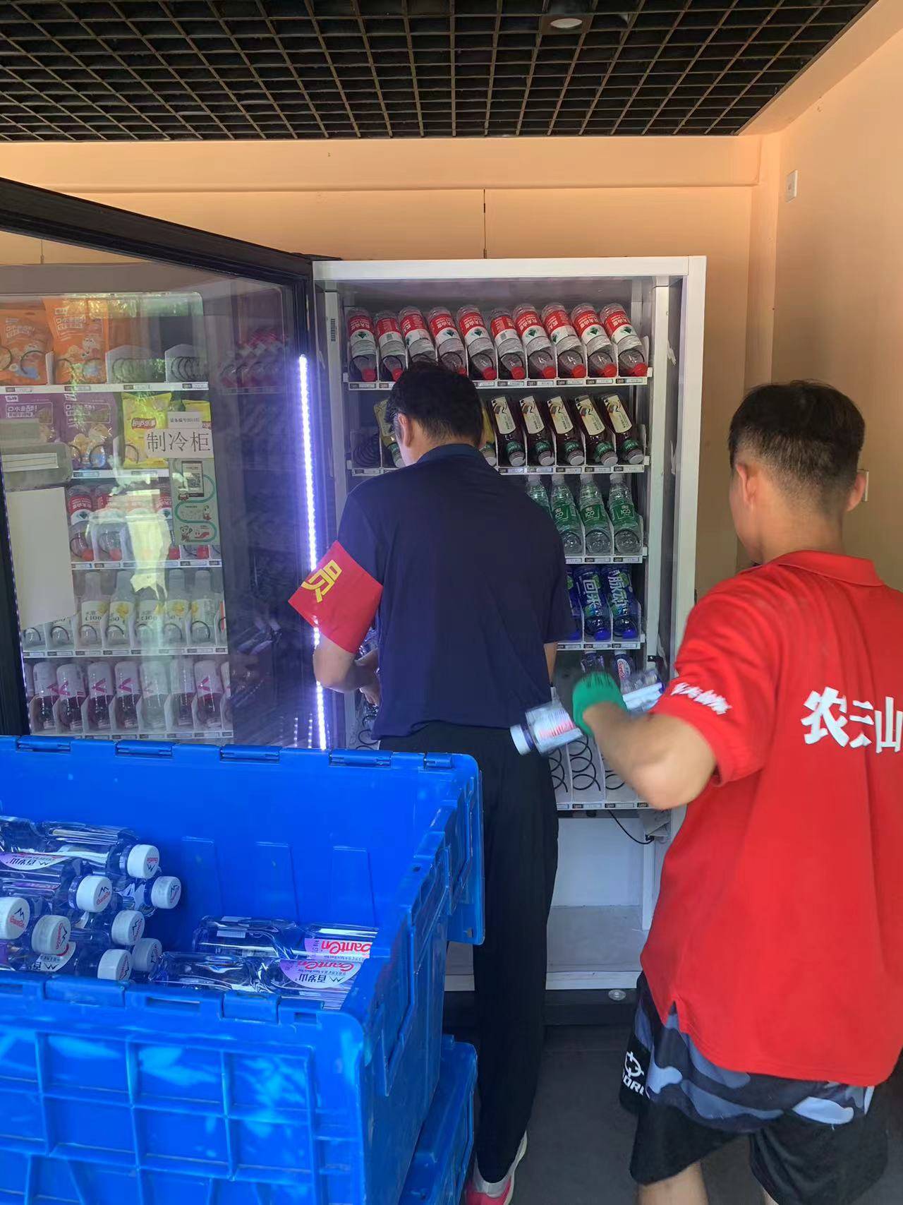 霍建生:以前不是暑期可能(一天)上山就2次,一次7箱(饮品),现在又增加2趟,主要就是功能性饮料、矿泉水需求量是最多的,我们设有一个常温柜,因为老人喝不了凉的,给他们设一个常温柜,其他是制冷柜,年轻人喜欢喝凉的,夏天比较热。