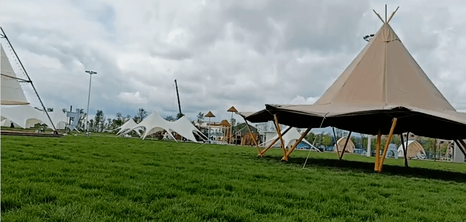 吉林中亿旅游开发股份有限公司总经理刘刘:总计住宿帐篷35顶,可容纳100余人,餐位帐篷80顶,项目建成后,露营地每周会开设不同的主题晚会,进一步丰富敦化旅游休闲项目,推进旅游市场的消费扩容。