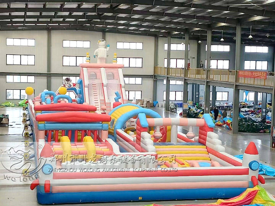 造型设计符合儿童审美的充气城堡会更受儿童欢迎!像梦幻森林城堡这款,整体造型设计看上去就像是一座真的城堡一样,童话色彩十足,再加上里面各种造型如小卫兵、白天鹅、胡萝卜等的加持,使这款充气城堡的童话氛围感满满,试想哪个孩子能抵挡住它的诱惑?再比如这款快乐星球充气城堡,里面大白熊的设计和太空人的设计,让孩子们实现了一场太空梦,可以近距离和这么多种太空元素接触,也是一次不错的体验!