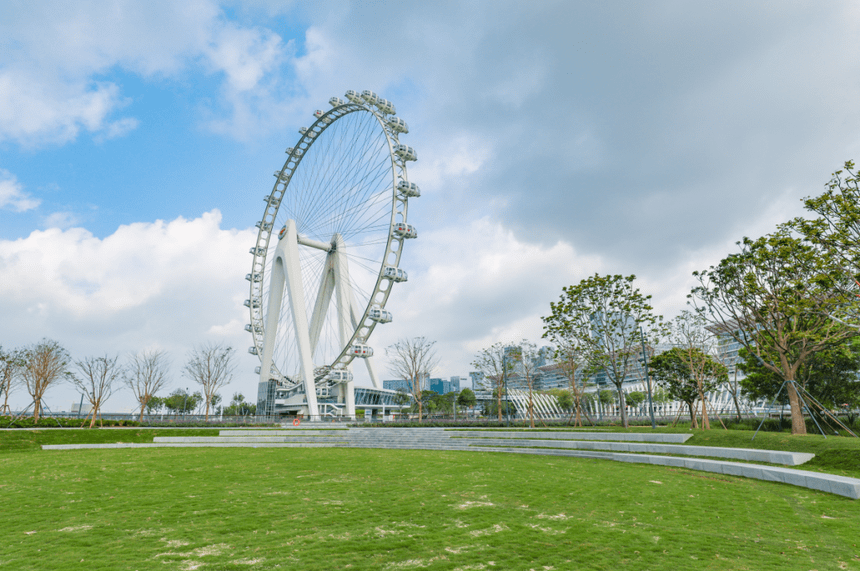 来欢乐港湾乘坐全国首座全天景轿厢摩天轮——“湾区之光”摩天轮,在128米的高空俯瞰前海湾风光好不惬意。