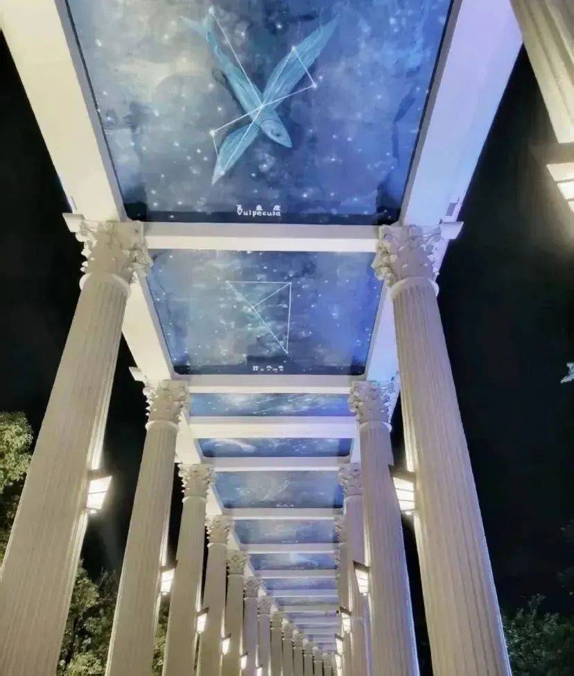 第二站新桥市民广场:新桥市民广场位于新桥街道中心路,广场恢弘亮丽、突出欧式风格,228根罗马柱分布广场东西两侧,88个星座图、20个星空图贯穿长廊。建有大小舞台、钟楼、喷泉、休闲花园、文化艺术长廊、儿童公园、景观雕塑等设施,是市民喜爱的主要健身活动场所。