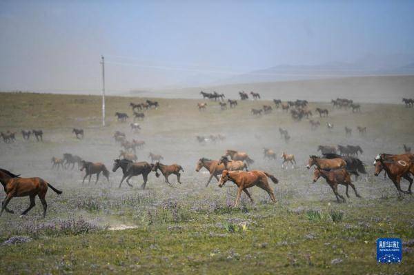 这是在新疆伊犁哈萨克自治州昭苏县一处草地拍摄的马群(7月16日摄)。