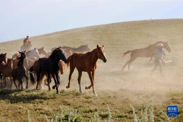 牧民在新疆伊犁哈萨克自治州昭苏县一处草地放牧(7月16日摄)。
