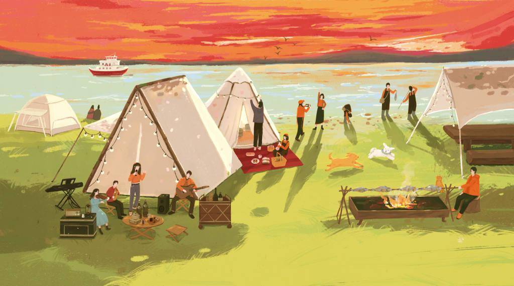 晚上,来一顿户外烧烤,滋滋冒油的烤串再配一杯冰镇汽水,一日的劳累都烟消云散。图/视觉中国