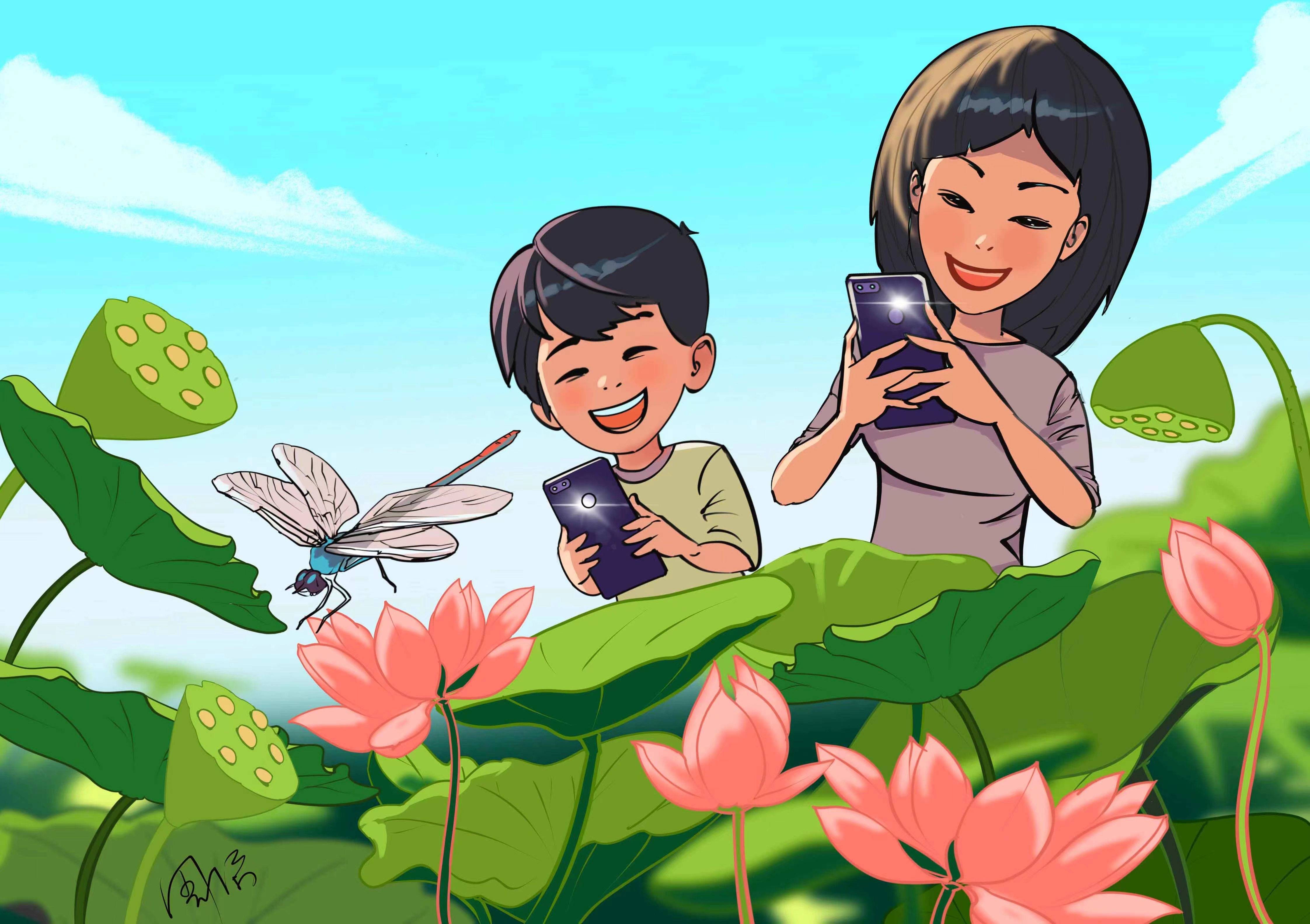 漫步在荷塘的廊桥上,置身于百亩荷花的花海中,荷叶摇曳,水波荡漾,蛙声阵阵,清香沁人。三三两两的游客或赏荷拍照,或细嗅淡雅的荷香,感受惬意与清爽。