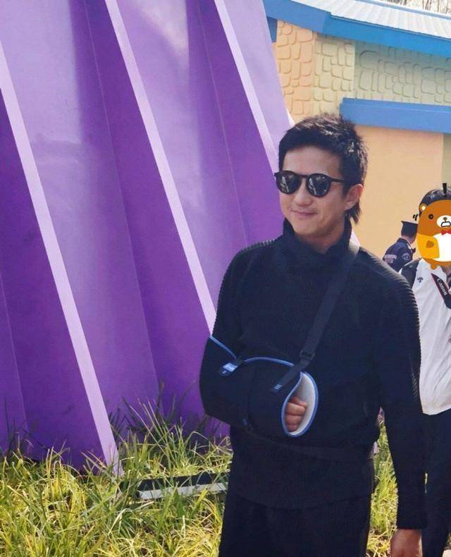 当天,邓超右手的伤并没有完全康复,依然戴着护手带,对于热情的路人,他保持随和作风,用左手与路人招手示好,又以微笑脸上镜。
