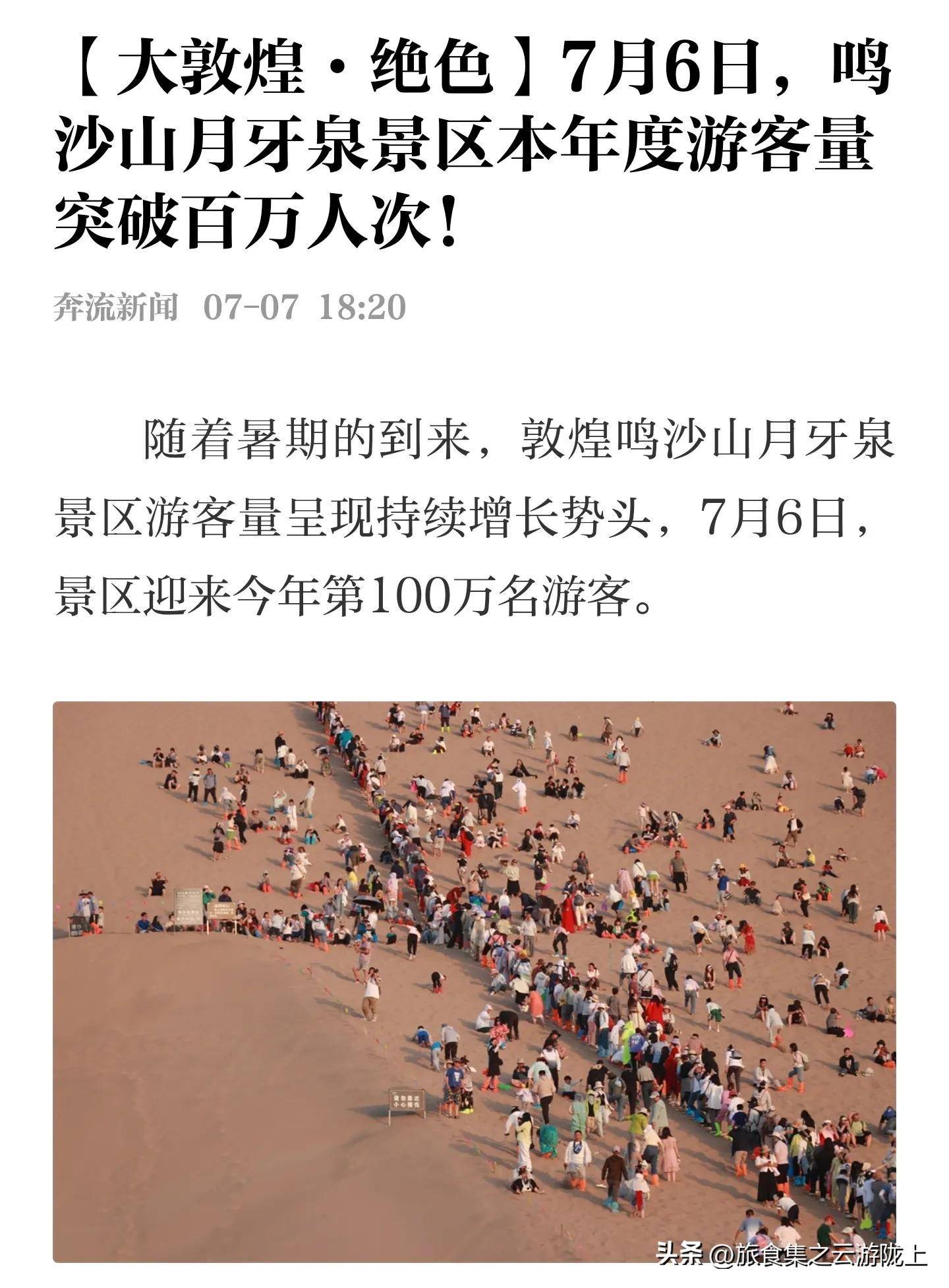 俞敏洪团队之后,陇原旅游真的火起来啦!鸣沙山·月牙泉堵骆驼游客量破百万、张掖七彩丹霞客流破百万、嘉峪关关城游人拥趸、兰州中山桥摩肩接踵……