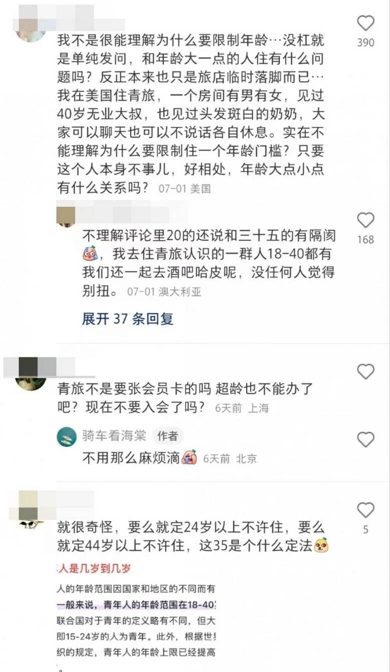 还有网友表达愤怒:“连青年旅舍都有年龄限制了?”“这规定太过分了,应该直接投诉!”