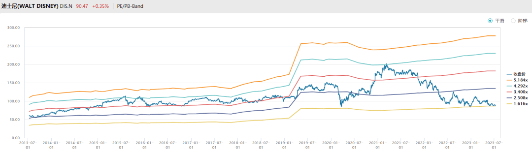 众多因素成为市场观望的原因。如果以PB来看,高位跌幅超过50%的迪士尼,估值已经是过去10年低位。