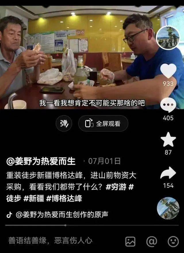 7月1日,姜野发布了一段视频,宣布他和老王要去新疆博格达峰进行重装徒步,并表示7天左右就能回来。”