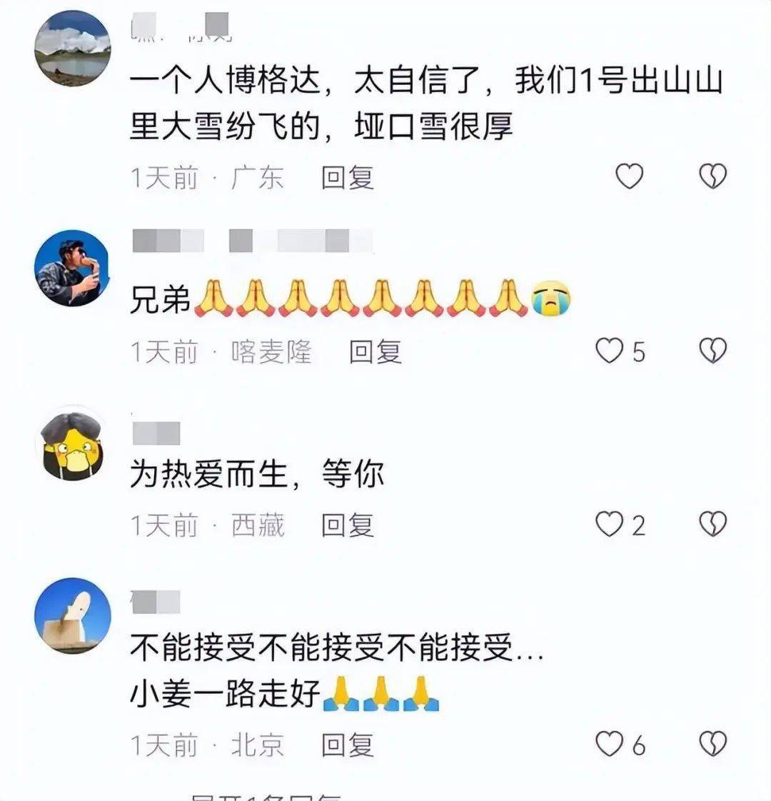 姜野遇难的信息传开之后,粉丝们纷纷评论区留言悼念。